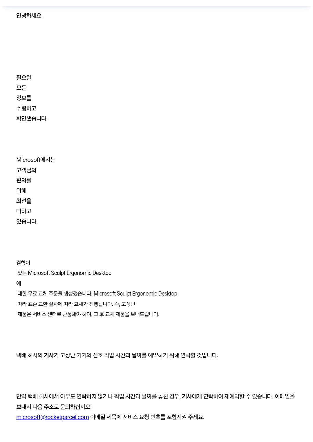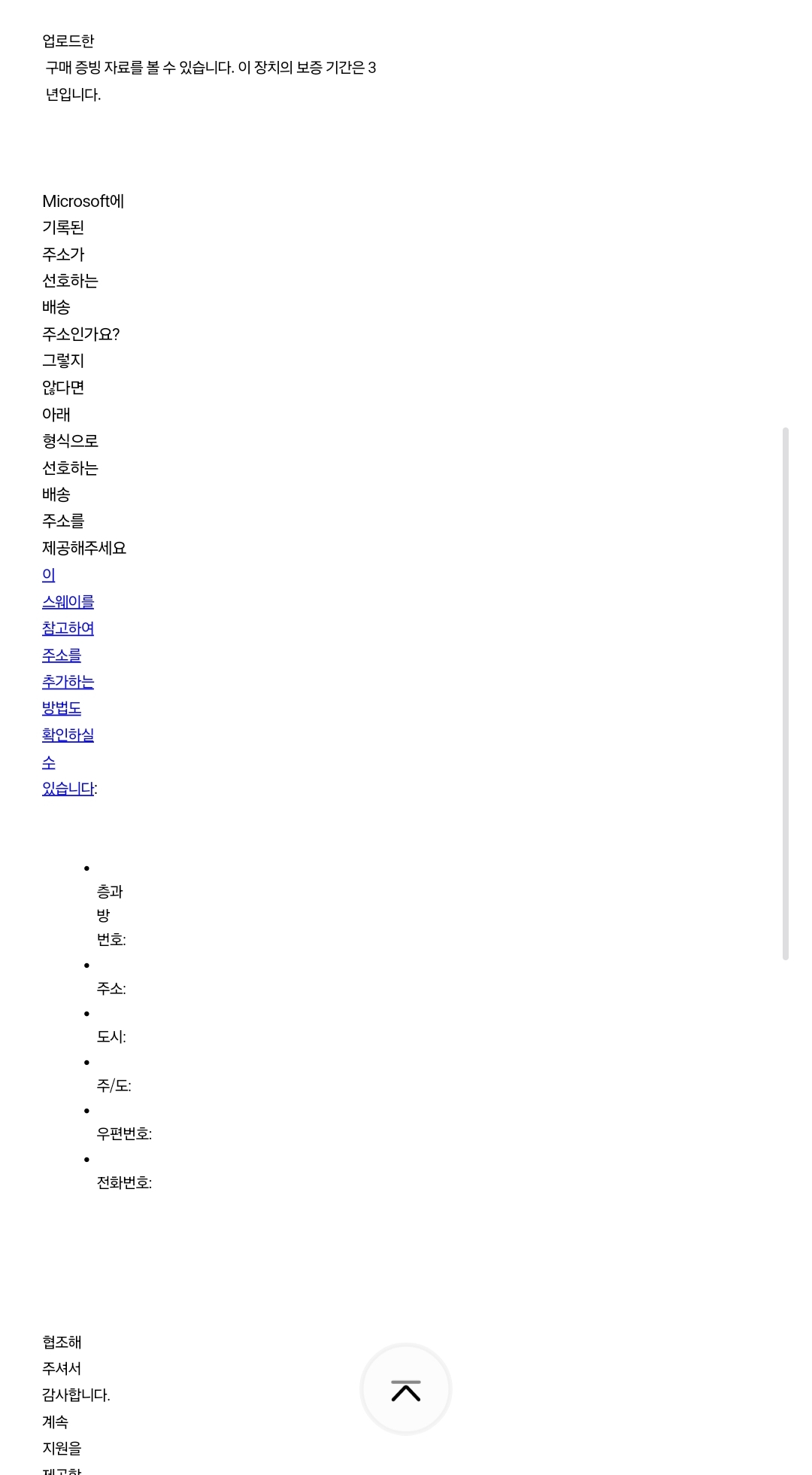 보증기간 3년이며, 배송주소 확인해달라는 내용이 옵니다.